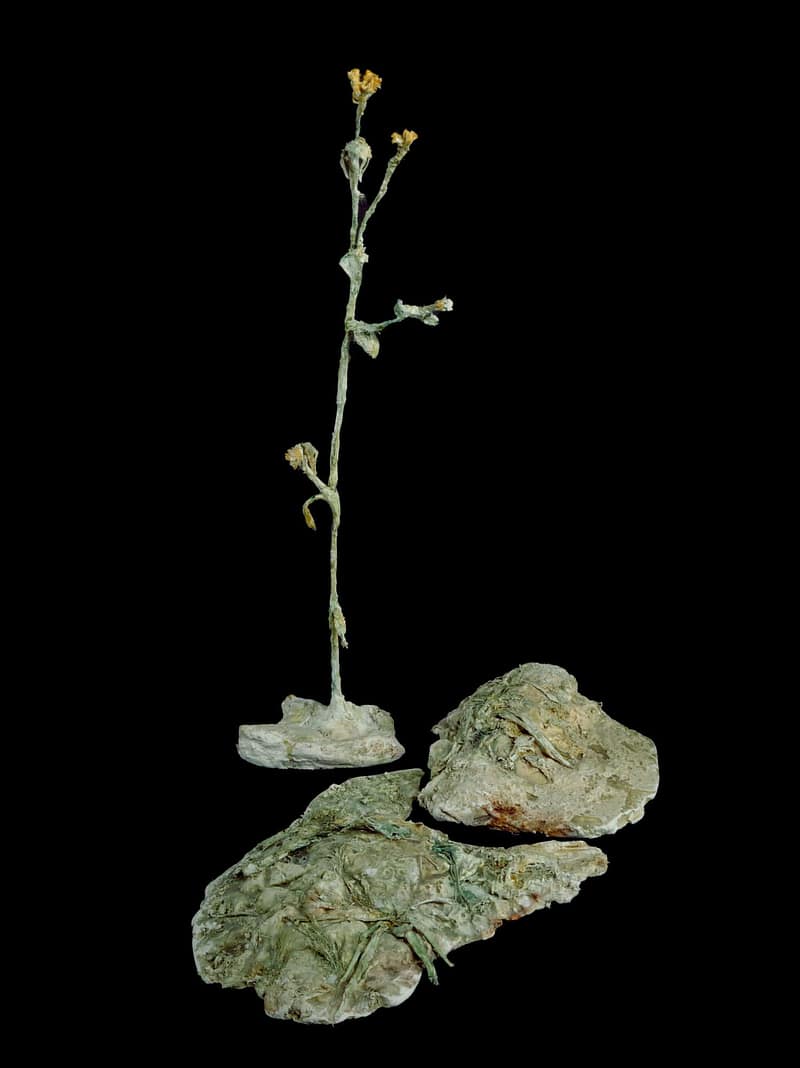 Plâtre, journal, ficelle, filasse gouache acrylique